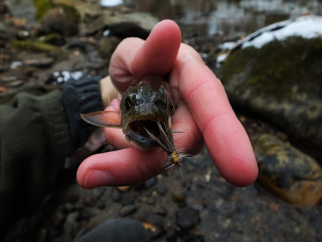 February is the last of the three really tough months to get a trout on a dry fly. March can by difficult but it usually isn't as bad as December, January, or February. If you can knock those three months out you can catch trout on dries any month of the year. Today, the 1st of February, was fairly warm with minimal wind and good water flows and temperatures on the local streams. I felt like I had just been thrown a bone! I could knock out February in one day.