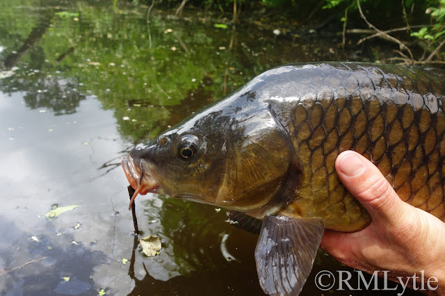 It turns out the fish under the trees would eat every fly I threw in their general direction, and all the more so if it made a little "plop". The Adams wasn't ideal but it did take a couple of fish, the first of which was a particularly good looking mirror.